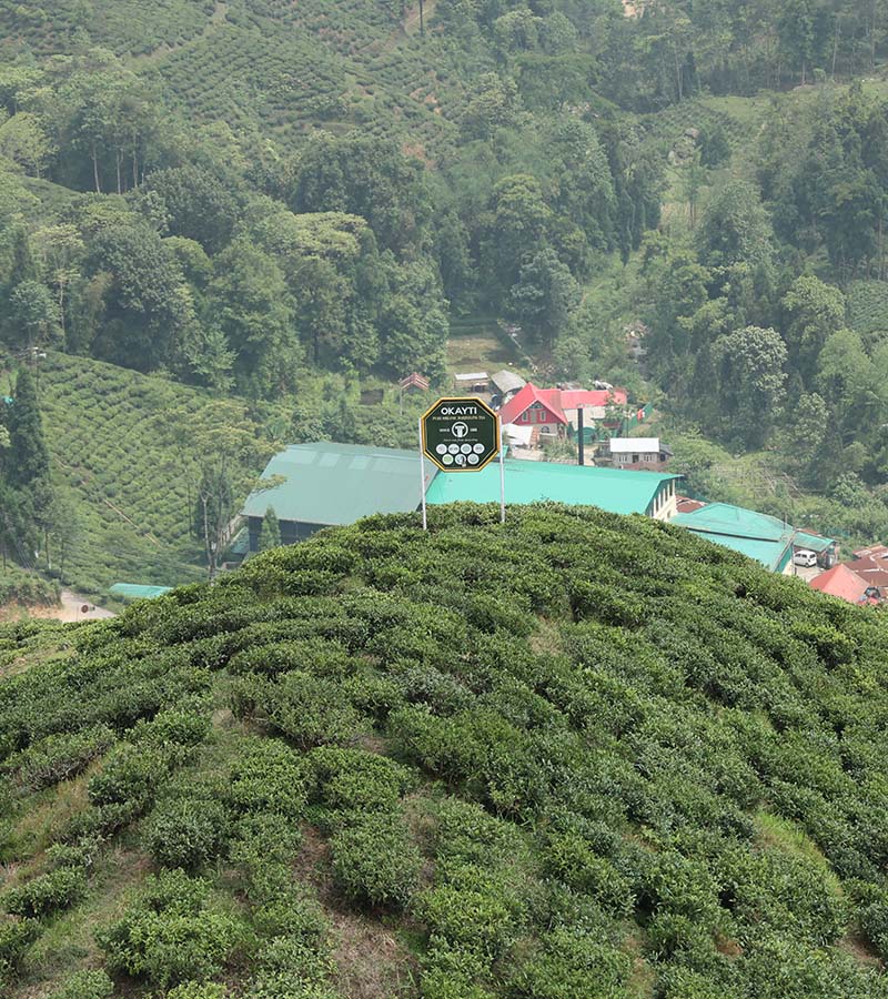 Sprawling over 447 hectares of undulating terrain, Okayti Tea Estate is nestled among tall pines with snow-capped mountains in the backdrop. Since 1888, Okayti has been producing some of the finest Darjeeling teas, cherished worldwide and featured in Europe's most luxurious tea houses. With a workforce of 700 skilled workers, Okayti produces 150,000 kilograms of top-quality tea annually.